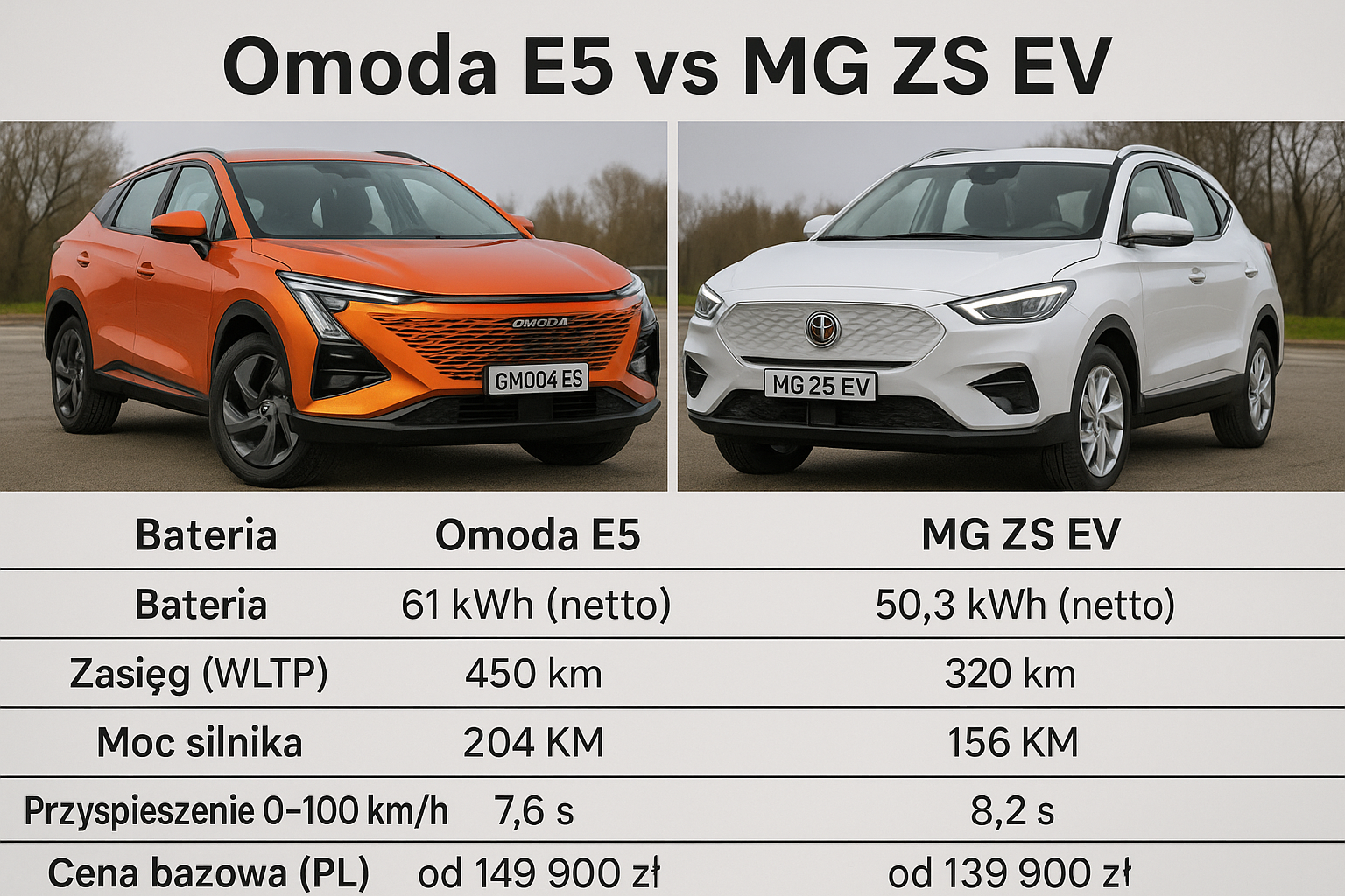 Chińskie samochody elektryczne coraz śmielej wjeżdżają na polskie drogi. Dwa z nich — Omoda E5 i MG ZS EV — konkurują o uwagę kierowców szukających niedrogiego, miejskiego SUV-a na prąd. Sprawdziliśmy, który z nich lepiej sprawdzi się w codziennej eksploatacji.